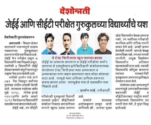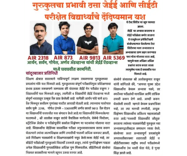 Achieve excellence in JEE & NEET with personalized mentoring, small batches, and proven results — only at Shashavt Gurukul, Amravati.